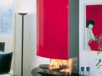 C'est une pièce assez aérée, une cheminée dans laquelle peuvent avoir une forme ou une décoration totalement inattendue et cosmique. Éléments structurels légers, verre, métal - les caractéristiques distinctives des cheminées de style moderne.