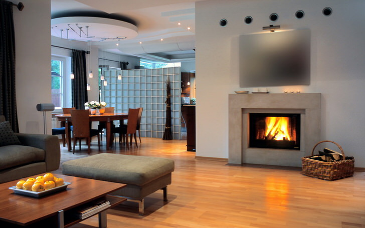 Les économies sur les matériaux de revêtement sont également évidentes, car une cheminée de style minimaliste peut littéralement être une flamme dans une niche dans le mur, sans aucun élément supplémentaire. Il convient de noter qu’à l’état éteint, un tel foyer n’aura aucune valeur esthétique.