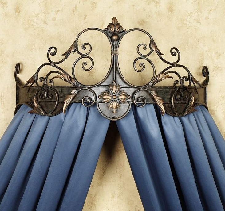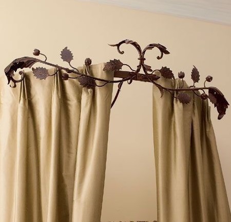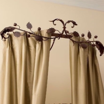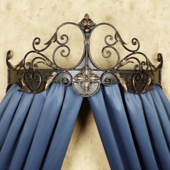 - Des corniches forgées spéciales sont activement utilisées pour la canopée. Ils tiendront solidement le baldaquin autour du lit.