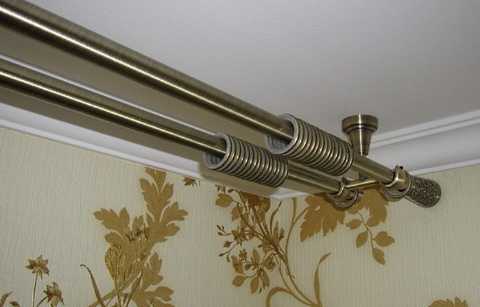 - Lors du développement d'une composition complexe et expressive de rideaux. Pour créer une décoration luxuriante autour des fenêtres, utilisez souvent un support double.