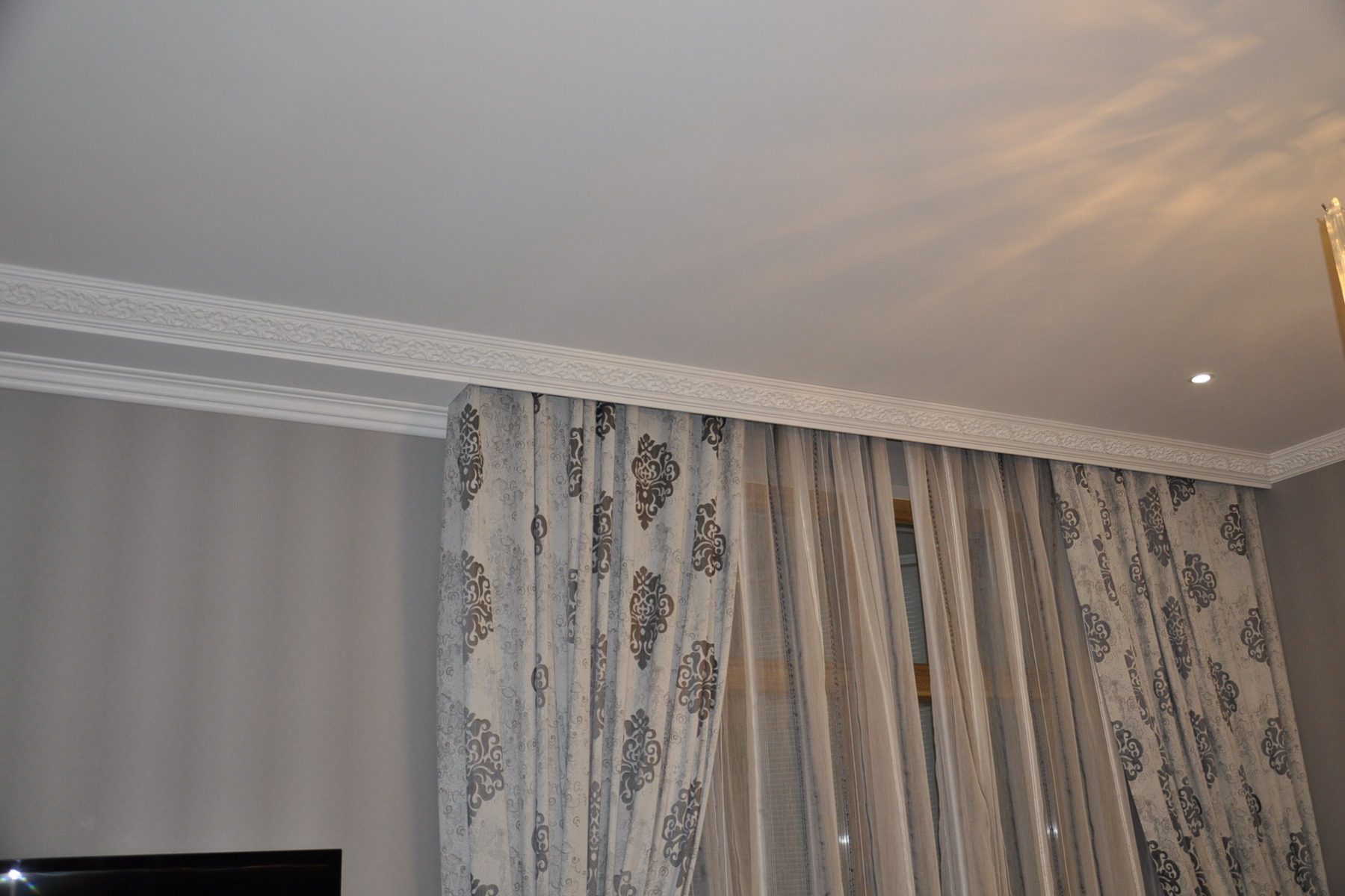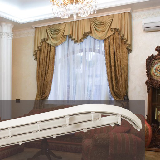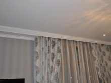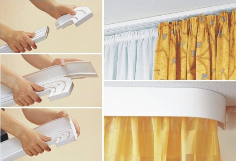 Vous devez également décider à partir de quel matériau acheter la structure. Bien sûr, pour les rideaux multicouches classiques, le meilleur choix serait un modèle en aluminium, mais le pneu en plastique semble presque inaperçu, se fondant avec le plafond.