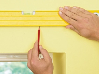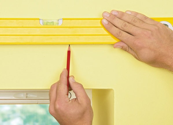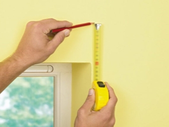 - Partez de la fenêtre en ouvrant 2,5 cm et marquez les points de fixation des supports à cette hauteur. Commencez à conseiller le balisage depuis le centre. Marquez les points avec un crayon, puis percez des trous pour les attaches. Pour installer des supports en plastique doivent faire deux trous pour l'installation de métal - trois.
