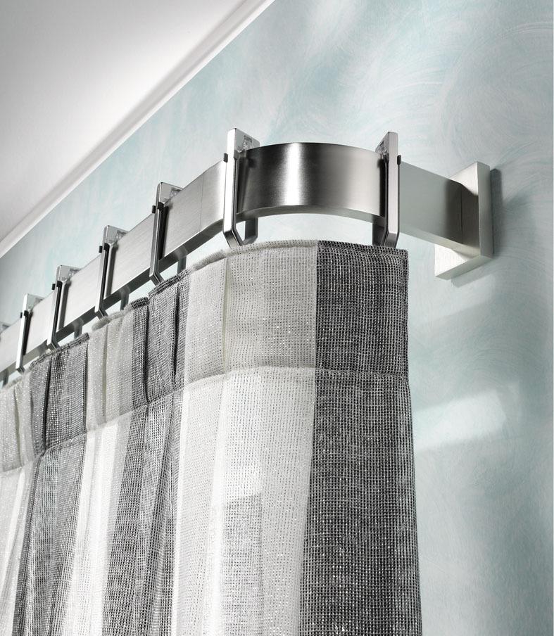 Ces modèles conçus pour les rideaux lourds et les structures à plusieurs rangées, il est recommandé de les monter au plafond. Les rideaux de poids standard peuvent être suspendus à la corniche murale.
