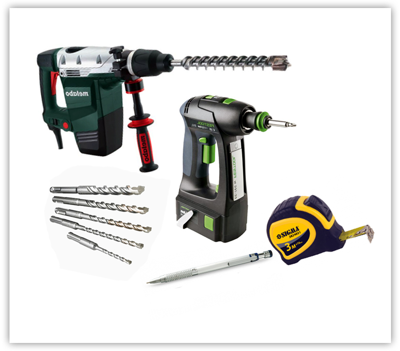 - Insérez les chevilles dans les trous. Suivez avec un tournevis pour fixer les supports avec des vis dans les chevilles.