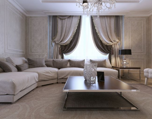 Pour rendre les rideaux décents à l'intérieur, ils ont besoin d'une fermeture de haute qualité. Dans ce cas, le profil de gouttière devient un choix fréquent. Le profil lui-même peut être composé de différents matériaux et être complété par divers détails du décor, allant du film décoratif adhésif au fini avec des strass.