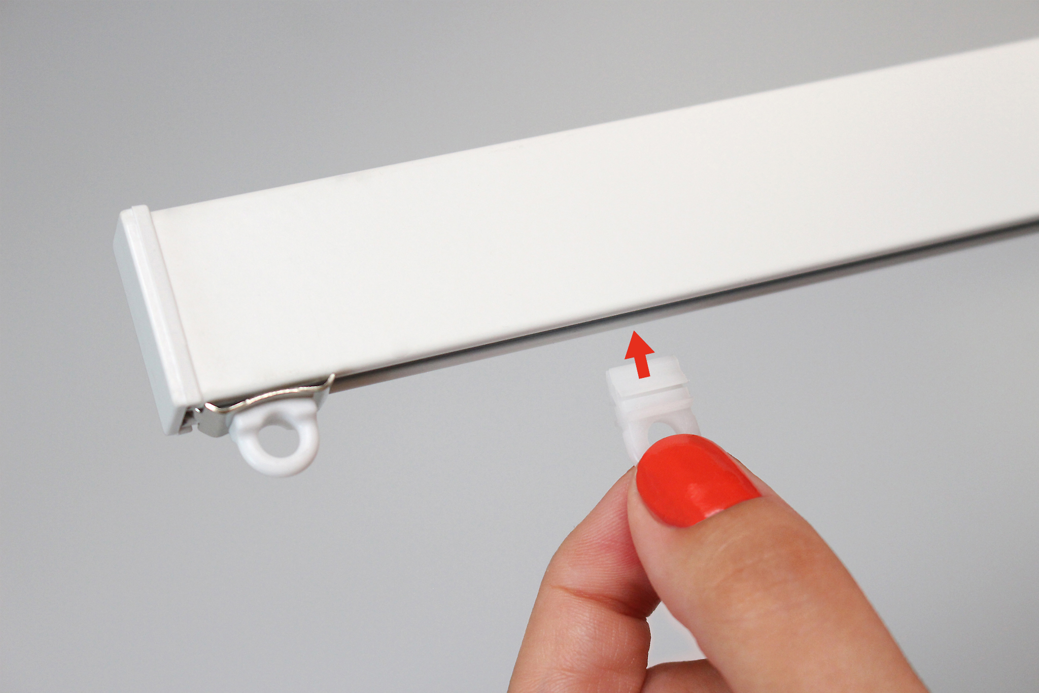 - Aux coureurs sont attachés crochets avec l'aide de laquelle les rideaux sont suspendus. Les hameçons peuvent être fabriqués, comme les coureurs, en plastique ou en métal. En termes de résistance, les premiers ne sont pas très inférieurs aux seconds, mais les modèles en métal sont souvent mieux adaptés à la conception de rideaux et de corniches plus spécialisées.