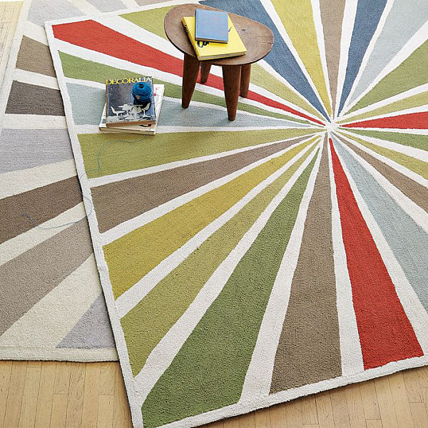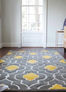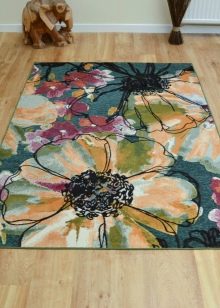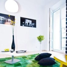 - Moderne. Cela peut inclure n'importe quel produit de couleur et de motif, à la fois un fond monochromatique saturé et un fond plus pâle avec une abstraction surlignée en couleur vive. Mais le plus souvent, dans ce groupe, ils définissent des tapis monochromes avec de grandes couleurs, tissés à partir de fils multicolores en combinaisons de deux ou trois couleurs, adaptés au style pin-up et similaires.