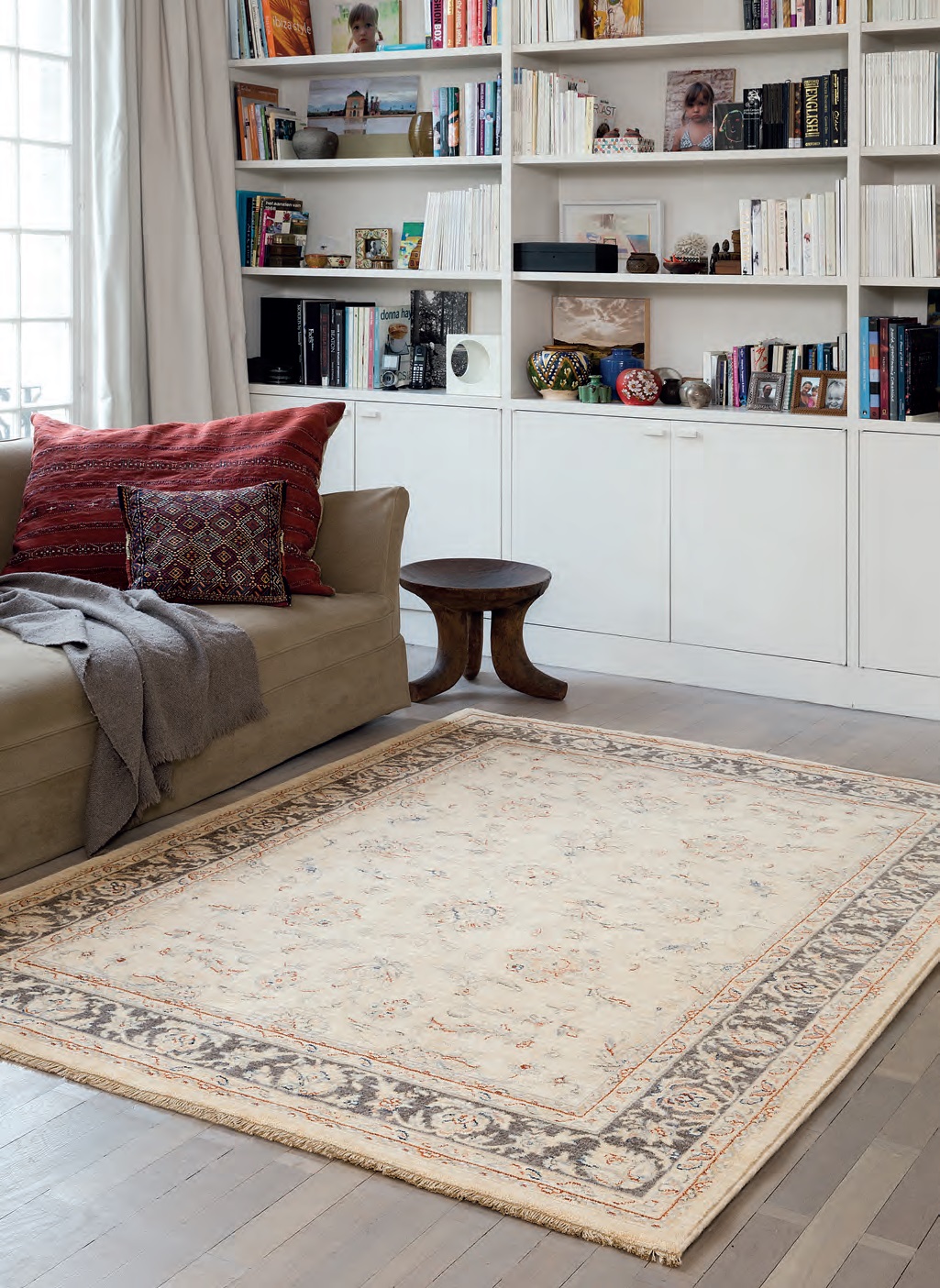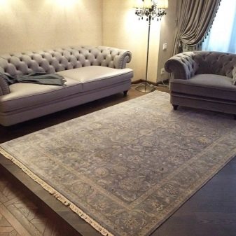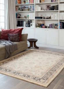 - Style classique. Les tapis avec des motifs et des boucles ajourés, des monogrammes et des motifs floraux sont populaires depuis des décennies et toujours démodés et sans concurrence. Les locaux dans le style du conservatisme, rustique, géorgien, empire, vénitien et colonial avec de tels tapis se confondent en un espace harmonieux. Convient pour les bureaux, salons, chambres, salles à manger, enfants. Une telle polyvalence est associée à la variété de couleurs de revêtements.