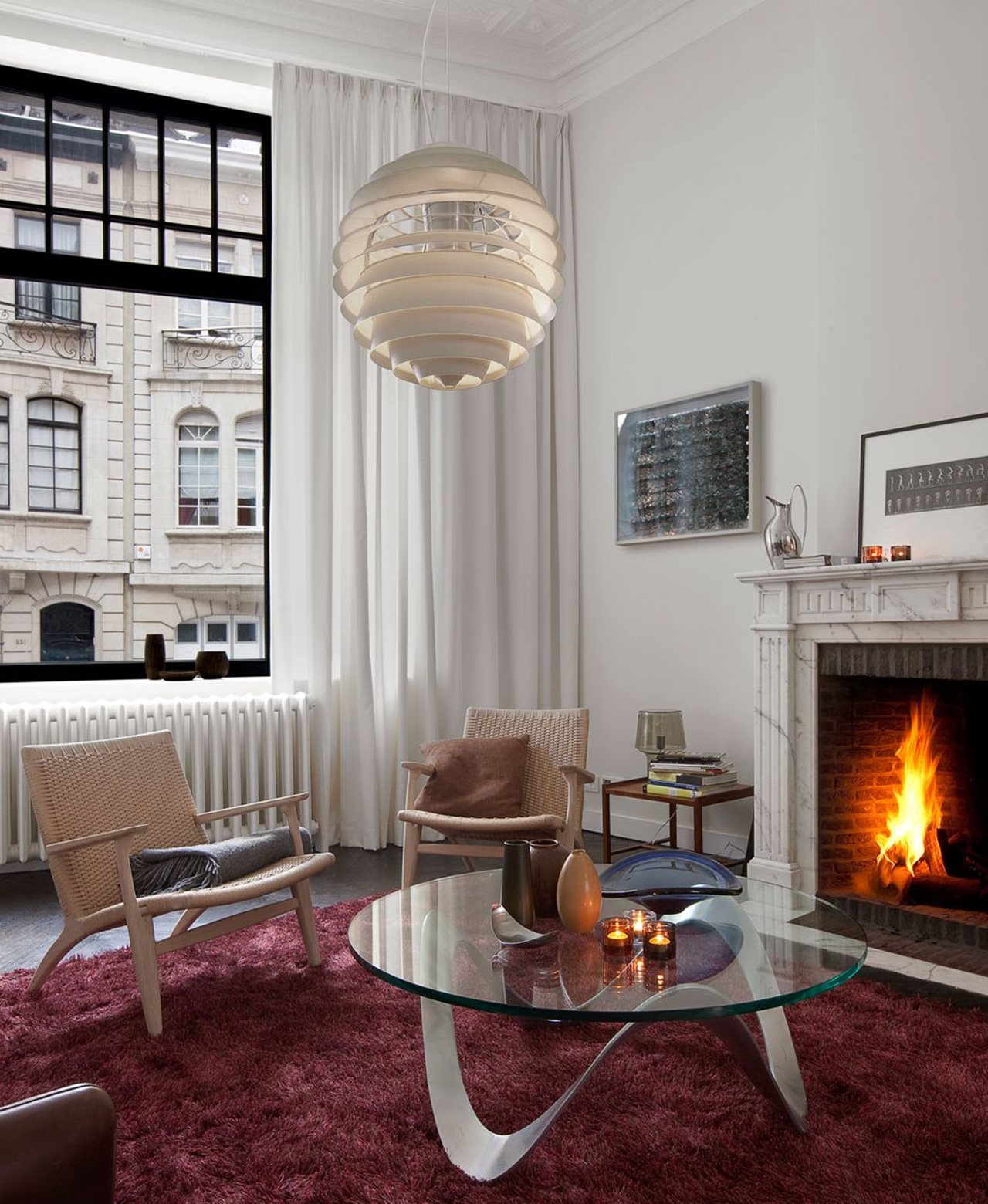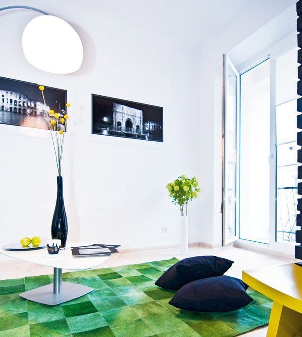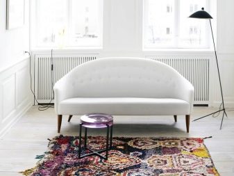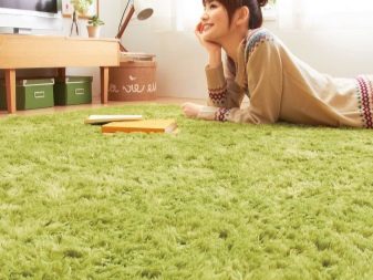 Les propriétaires de tapis moelleux se réjouissent de leur placement, même dans les pièces communes du type invité, car ils confèrent à l'intérieur un confort particulier et le remplissent visuellement de chaleur et de bien-être.