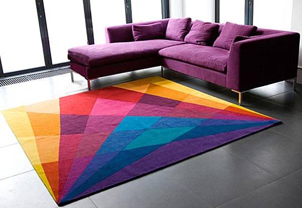 - Couleurs unies. De tels tapis ont souvent une structure dense et une sieste moelleuse et moelleuse. Les couleurs vives des produits sont recherchées dans les chambres d’enfants et dans les intérieurs au style avant-gardiste, pop art, fusion. Dark complètent le style grunge et le brutalisme, la lumière s’intégrera au salon ou à l’analyse fonctionnelle. C'est une solution de conception fréquente pour la partie la plus intime de la maison - la chambre à coucher.