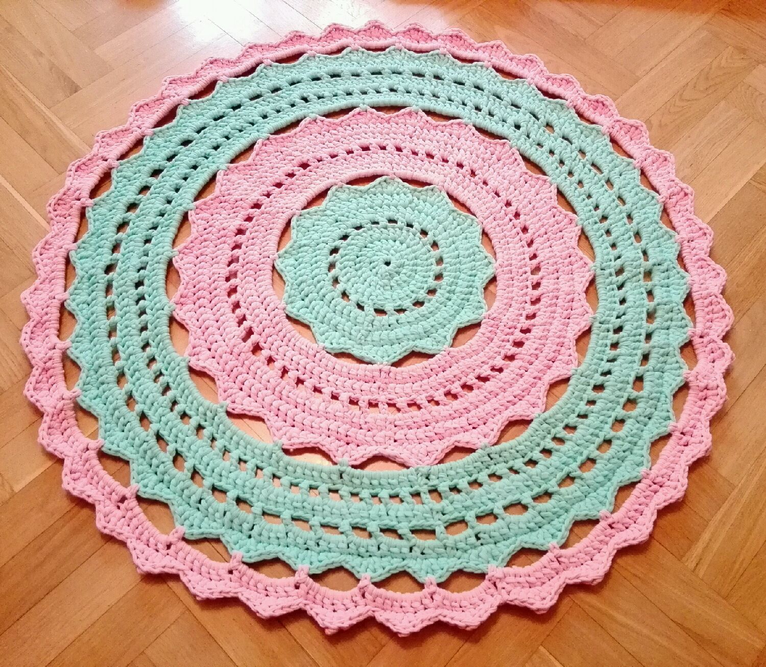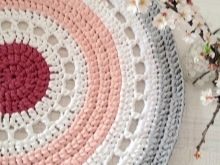 Pour créer un tel tapis, on utilise du fil à tricoter de type ruban, également appelé fantaisie. Sa composition est 100% coton. C'est naturel, ce qui signifie que cela ne causera pas d'allergies.