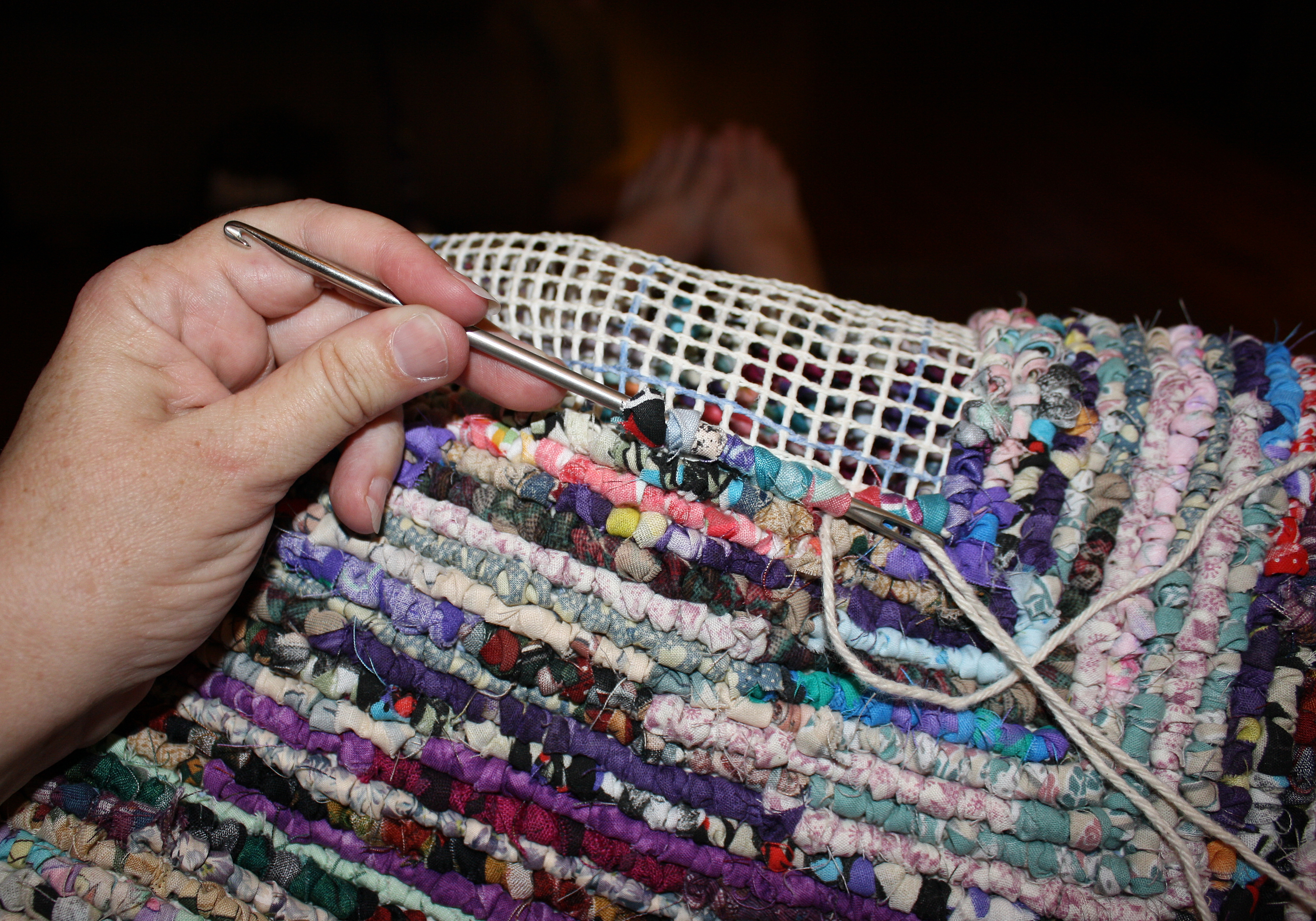 - Nous cousons tous les tours de notre tapis avec un fil régulier;