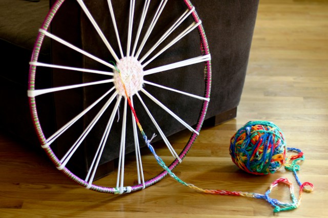 - En alternant de la sorte, finissez à la taille désirée. N'oubliez pas d'ajouter des boucles périodiques. Vous pouvez utiliser un fil d'une couleur, puis votre tapis deviendra monophonique, ou combiner différentes couleurs en les alternant.