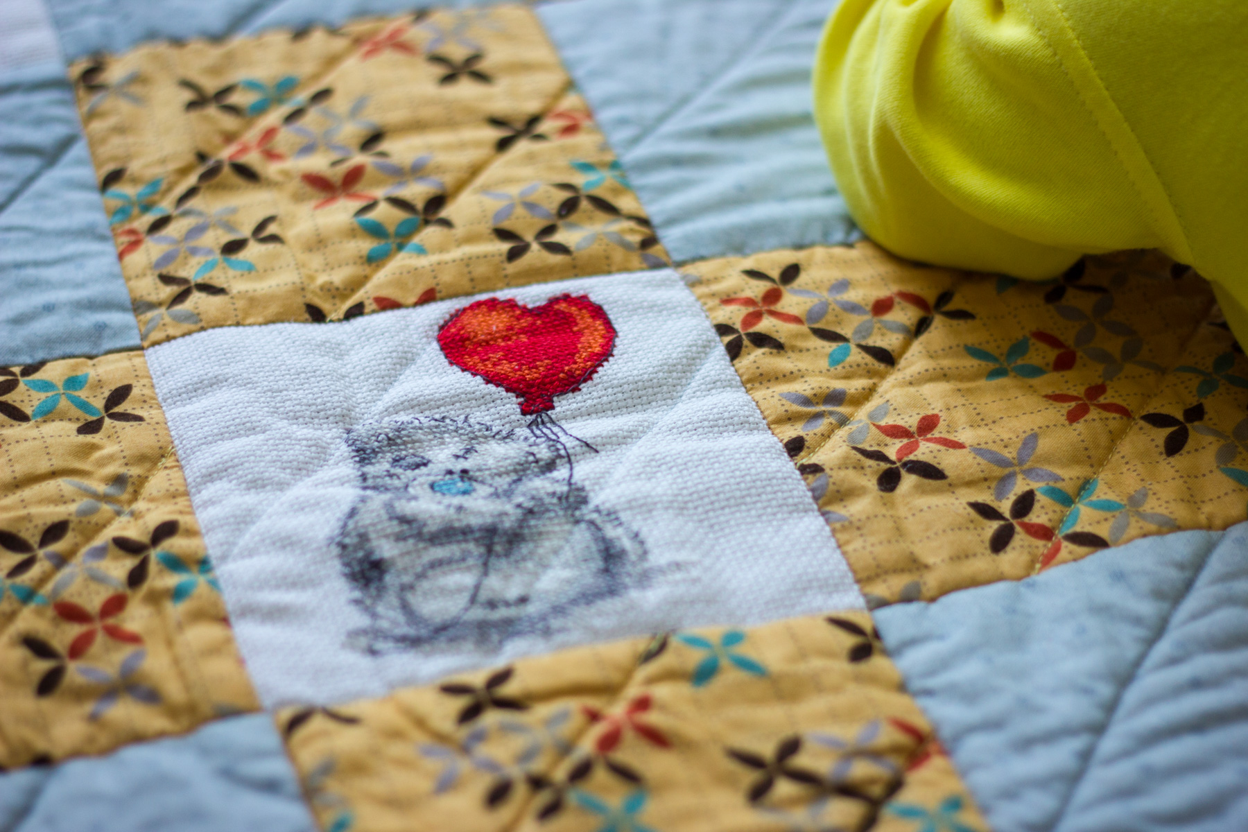Des lambeaux de tissu sont cousus ensemble dans une seule toile.