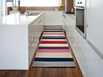 Pour la salle de bain et la cuisine, vous aurez besoin d’un chemin qui résiste à l’humidité et n’absorbe pas les odeurs.Il doit être fabriqué en matériaux synthétiques et avoir une base caoutchoutée afin de réduire les risques de moisissure et de champignons. Il vaut mieux opter pour les revêtements à l'aiguille. En aucun cas, il ne devrait glisser et glisser.