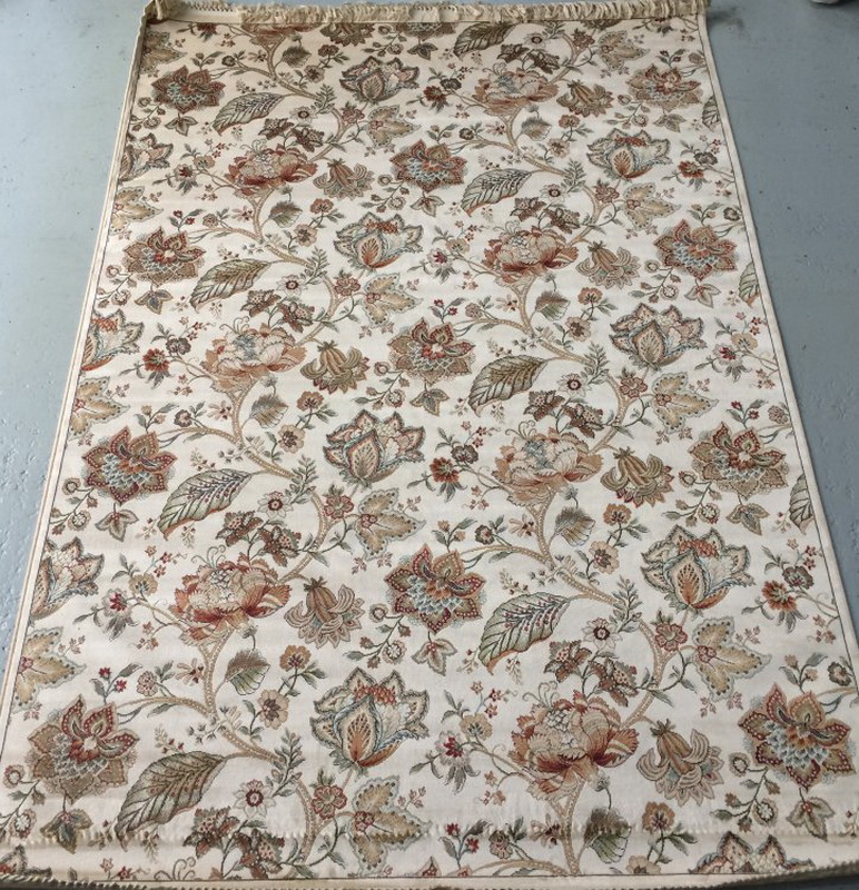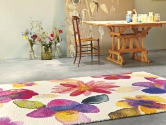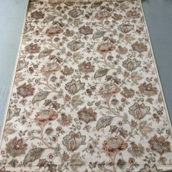 Très souvent, vous pouvez trouver des pistes avec des empreintes naturelles - avec des lis, des marguerites, des motifs en forme d’entrelacement de tiges ou de feuilles. Surtout authentique, il est combiné à une pile longue ou moyenne et à des couleurs discrètes.