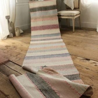 Il est impossible de ne pas dire sur la popularité croissante des pistes de style provençal, personnifiant la maison typiquement française à la périphérie. Ce sont des tapis de toutes tailles et de toutes longueurs de couleurs délicates, effilochés ou même légèrement déchirés, vieillis indépendamment, peut-être avec des coutures apparentes. En général, ils parlent tous de négligence et de simplicité. Ils ressemblent vraiment à des tapis rustiques.