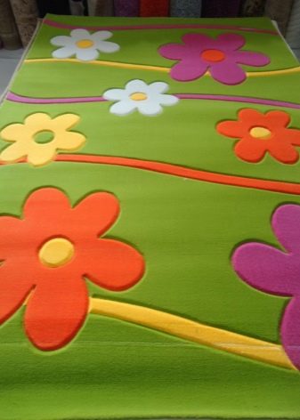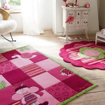 Pour une chambre d'enfants, il sera un peu plus difficile de se procurer un tapis. D'un côté, il y a beaucoup de motifs et de couleurs pour les tapis pour enfants: chaque parent ou même l'enfant pourra trouver quelque chose pour lui-même, mais vous devez faire attention au matériau. Ainsi, par exemple, si un enfant est allergique à un type de tissu ou de laine, il n’est bien sûr pas nécessaire de choisir un chemin qui inclut au moins une partie de ce matériau.