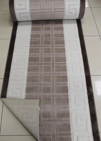 Les fils artificiels s'estompent très facilement, donc pour les pièces du côté sud ou près de la fenêtre, il est préférable de ne pas s'allonger.Ces revêtements ont même une forme volumineuse, ne rétrécissent pas, ils résistent à l'humidité et sont faciles à nettoyer. Il est très pratique que les pistes en matériaux non naturels puissent être pliées ou pliées, cela ne sera pas pire pour eux.