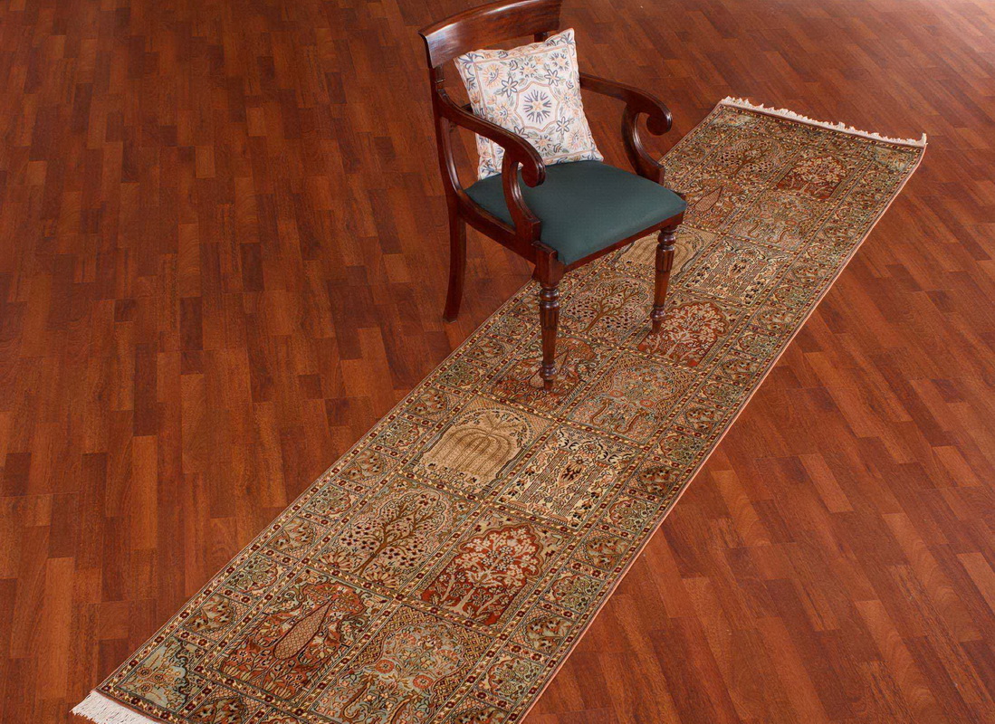La soie, la laine et le coton doivent être distingués des matières naturelles. Elles sont toutes parfaites pour les pièces ensoleillées - elles ne se faneront pas, elles vous dureront plusieurs décenniesLa laine retient bien la chaleur et convient aux pièces sèches et froides. Des pistes de moquette en laine et en demi-laine peuvent être créées à la fois à l'aide d'une machine-outil et être tricotées - dans ce cas, le tapis est considéré comme étant fait à la main et évalué à un prix plus élevé. Vous pouvez passer l'aspirateur sur un tapis en laine, ce qui facilite grandement les soins. Par conséquent, vous pouvez en principe le placer même dans le couloir.