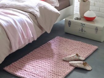 La seule chose à choisir cet accessoire pour le lit, notez qu'un petit produit peut glisser sur le sol. Par conséquent, vous devez absolument vous occuper de l’achat d’une doublure antidérapante. En utilisant un détail similaire, vous pouvez vous protéger et protéger vos proches contre d'éventuelles blessures, car le tapis ne glissera pas et ne provoquera pas de chute. Certains fabricants, connaissant une caractéristique similaire aux tapis de chevet, fabriquent leurs produits avec une base en caoutchouc.
