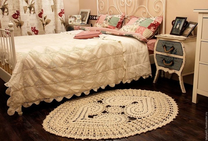- Vous ne pouvez pas vous limiter à des formes arrondies et choisissez un tapis de chevet, qui sera représenté motif sous la forme de lignes lisses, créant une image ovale ou ronde.