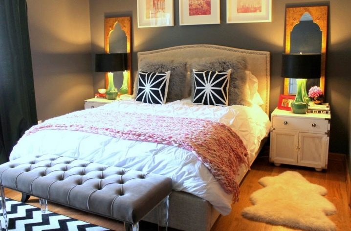 Les tapis de sol peuvent être placés le long du lit et à son pied. Si vous utilisez trois tapis en même temps, vous pouvez les placer sur trois côtés du lit, créant ainsi un dessin symétrique et ordonné de la pièce.