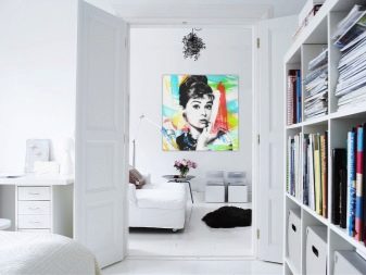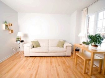 Le revêtement blanc réfléchit mieux la lumière: ceci peut être corrigé si les fenêtres font face au côté sombre ou s'il n'y a pas assez de sources de lumière. En plus, en éclaircissant le sol ou le plafond, vous pouvez créer l’illusion d’une augmentation de la hauteur de la pièce. Après avoir peint tous les murs ou les deux murs opposés, vous pouvez obtenir le même effet, mais en largeur ou en longueur.