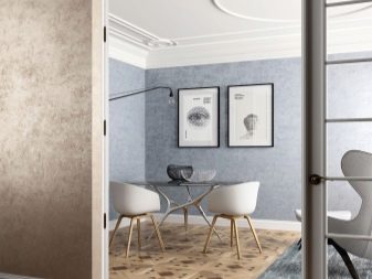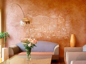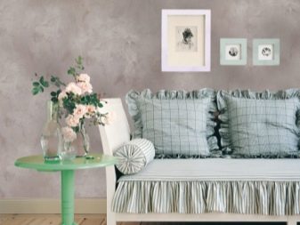 Pour décorer les murs dans n'importe quelle pièce, vous devez tenir compte de la conception générale de la pièce. Si vous choisissez un design classique, vous trouverez un mélange imitant le velours ou la soie. Il est possible de choisir un revêtement de peinture et vernis à la teinte nacrée qui donne luxe et élégance.Le plâtre décoratif est le plus souvent utilisé pour agrandir visuellement l'espace.
