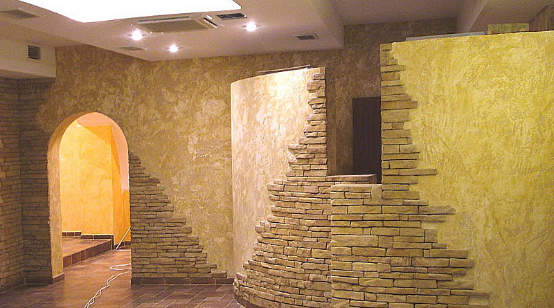 La décoration vénitienne est largement utilisée.grâce à cela, l'effet de la pierre naturelle polie est atteint. La surface ressemblera à du marbre, du calcaire ou de la malachite et elle est très belle. Ce matériel est proposé à un bon prix, et si auparavant seuls les gens fortunés pouvaient acheter de tels produits, il est aujourd'hui disponible pour tous. Il est intéressant de noter à l’intérieur une combinaison de pierre artificielle et de plâtre. Si vous souhaitez créer une image unique, choisissez cette option.