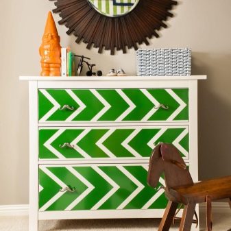 Le marché des matériaux de construction peut plaire avec une variété de peintures pour la décoration, qui diffèrent par divers critères. Le catalogue de couleurs est assez large. Vous avez la possibilité de peindre les meubles de manière vive et joyeuse, de rafraîchir la pièce, d'y apporter des couleurs naturelles et douces, à l'aide desquelles une atmosphère romantique et sobre sera créée. Si vous décorez chaque meuble séparément, le résultat final risque de vous surprendre, car la décoration vous permet d'obtenir les effets les plus originaux.
