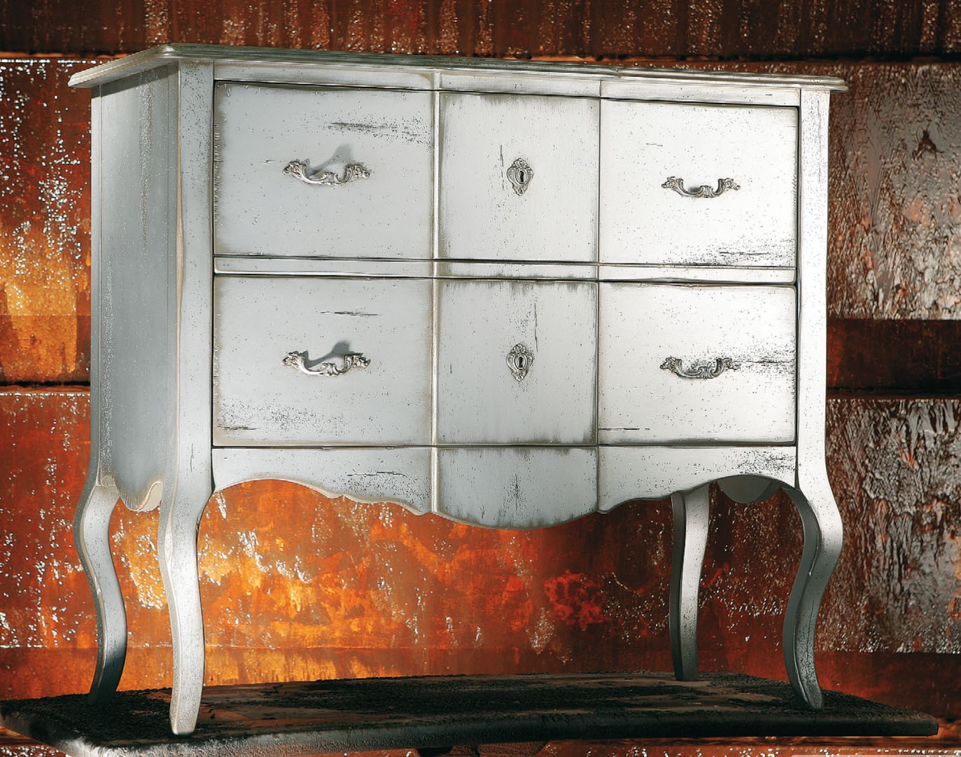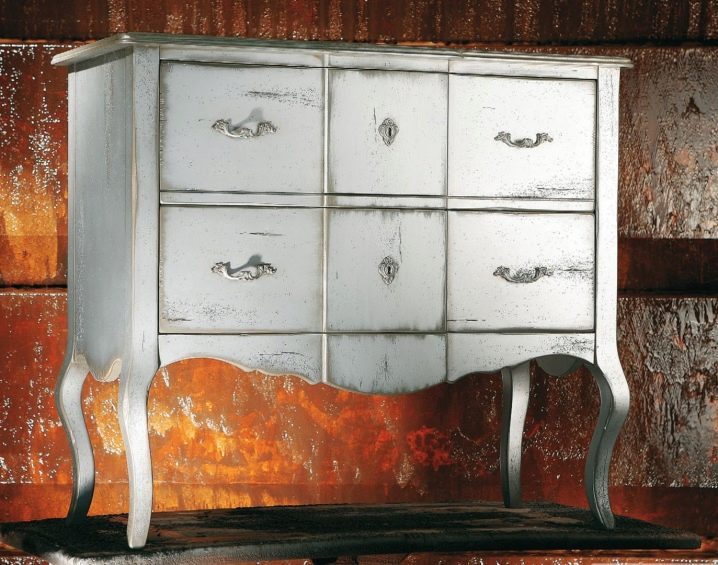 Peinture populaire avec l'effet de vieillissement de la surface. La variété dorée permettra d’introduire des éléments de solennité de palais à l’intérieur des pièces, si vous décorez certains meubles avec cette peinture (par exemple, des poignées de table, des décors sculptés). Tout dépend de vos préférences individuelles et du style que vous souhaitez concevoir pour l'intérieur. Heureusement, les fabricants de peinture pour meubles offrent une riche palette de couleurs qui vous permettra de concrétiser toute idée de design.