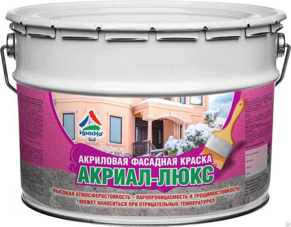 Type de peinture "Acrylique" absorbe peu d'eau et ne manque presque jamais de vapeur d'eau.Le principal avantage de ce revêtement est sa haute résistance à la saleté. Il peut être appliqué sur tout type de surface, à l'exception de la chaux et du silicate.