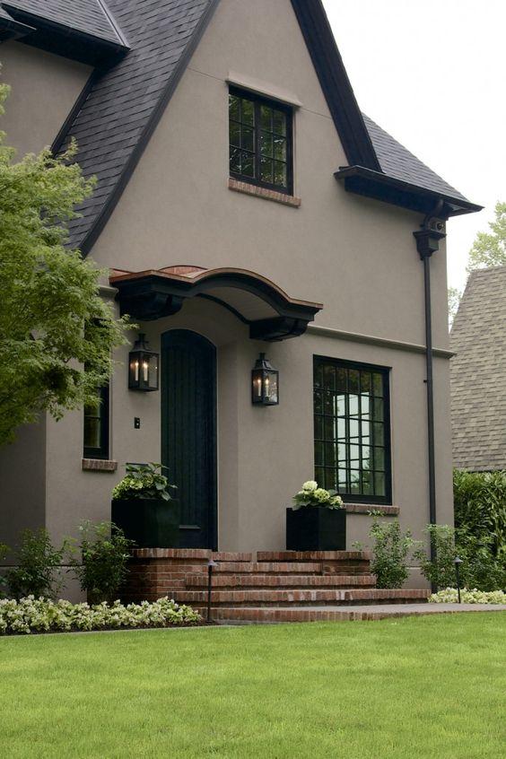 Un bon résultat est fourni par les colorants blancs et gris. Il n'est pas souhaitable d'introduire trop de tons sombres, sans quoi il y aura une sensation de tristesse et même un mauvais goût souligné. La façade verte se marie bien avec les paysages naturels, avec ses parcs, ses jardins et ses potagers. Des substituts plus modernes, appropriés dans les compositions modernistes, sont le violet et le noir.
