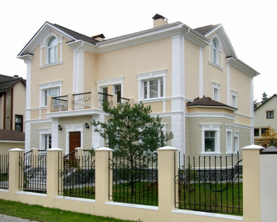 Les balustrades blanches et le ton similaire des encadrements de fenêtres correspondent parfaitement à la finition blanche ou crème de la façade. Mais pour choisir une couleur de peinture de haute qualité, vous devez tenir compte de nombreuses autres circonstances: