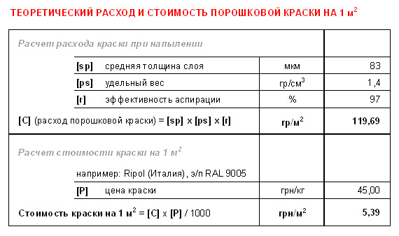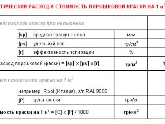 L'épaisseur minimale d'une couche de peinture en poudre est de 100 microns. L'utilisation de pulvérisateurs aide à économiser le colorant. Avec ces outils, il est possible de réduire la consommation de la composition colorante. 0,12 à 0,4 kg par mètre carré.