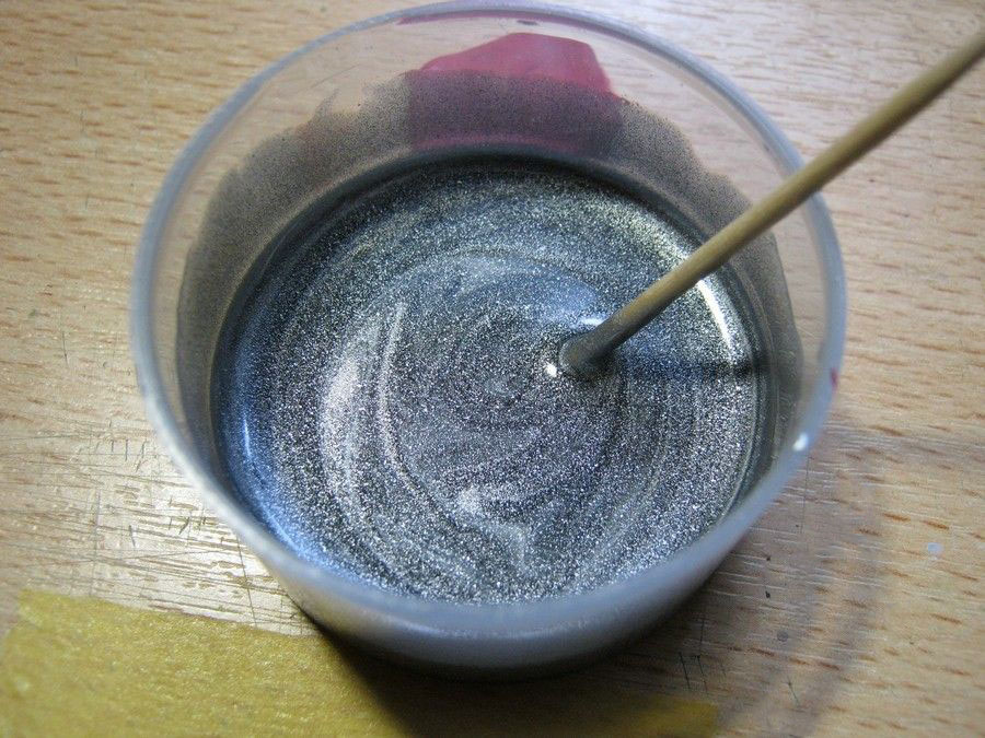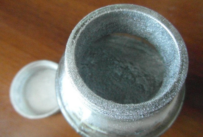 La composition avec l'aluminium doit son nom à la couleur argentée. La partie principale du poisson d'argent est une petite poudre d'aluminium. Pour préparer la solution, il suffit de diluer la poudre avec un vernis spécial à base de bitume et un solvant pour obtenir la consistance souhaitée.