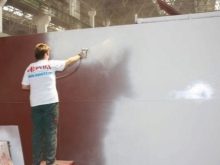 Il est nécessaire de considérer quelle épaisseur de peinture sera appliquée, ainsi que le nombre de ses couches. Pour différents matériaux, les fabricants recommandent d'utiliser une épaisseur de couche différente, par exemple1,5 millimètres du mélange suffisent pour le béton, 2 millimètres pour le bois, mais le béton de brique, de métal et d'argile expansé doit être recouvert d'une couche de 2,5 millimètres.