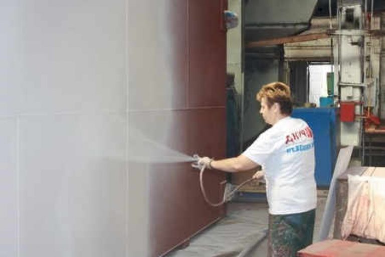 À l'extérieur, les peintures thermo-isolantes ressemblent à des pâtes grises ou blanches. Pour faciliter l’application, il est conseillé d’utiliser un pulvérisateur, auquel cas le traitement de surface aura lieu de la manière la plus uniforme, et le revêtement aura un aspect lisse et uniforme.