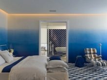 Il est recommandé d’utiliser une peinture à base d’eau brillante pour les pièces très humides et les surfaces nécessitant un nettoyage fréquent à l’eau humide. En outre, il vous permet d'obtenir des surfaces lisses brillantes, tandis que la peinture mate plus «calme» possède une structure poreuse qui attire la pollution.Peindre le plafond avec une composition brillante vous permet de les «soulever» visuellement pour augmenter la surface de la pièce. Mais si la hauteur du plafond à l’intérieur est d’environ 3 m, le revêtement brillant est perdu et n’a pas l’impression. La peinture brillante donne un effet de miroir puissant.