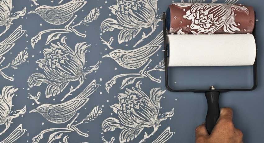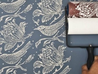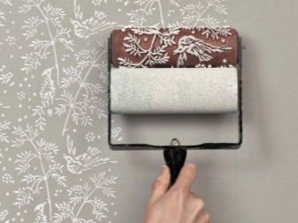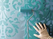 Un journal froissé ou un chiffon humide vous permet d'obtenir un soulagement ou des taches abstraites. Pour ce faire, essuyez la surface peinte et non chargée avec un morceau de papier journal ou un chiffon, après les avoir écrasé. Un effet inhabituel est l’application de peinture au rouleau texturé. Il y a un certain motif sur sa surface qui est transféré à la zone à décorer.Lors du choix de cette méthode, il convient de garder à l’esprit que la consommation de peinture augmentera.