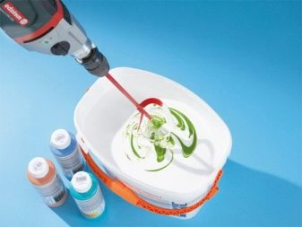 - Vous devez préparer tout le volume de peinture en une fois, sinon vous risquez de ne plus trouver la même teinte à l’avenir. Bien sûr, si les surfaces de travail sont grandes et que l’ensemble du processus prend du temps (la peinture commence à durcir dans le godet), cette recommandation n’est donc pas pertinente. Dans ce cas, vous devez bien définir les proportions de peinture et de couleurs utilisées et contrôler leur conformité avec les préparations ultérieures de la composition.