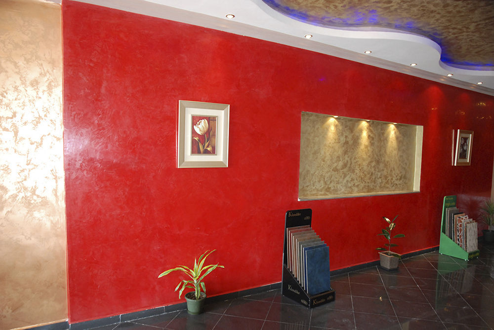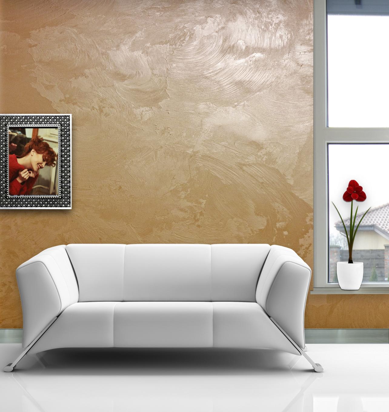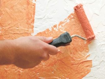 Le décor des surfaces peintes avec une «émulsion d’eau» est dans la plupart des cas réalisé au moyen de peinture, mais par l’utilisation de divers matériaux et techniques d’application de la composition. Il est très courant d'appliquer de la peinture sur du plâtre décoratif. Dans ce cas, la première couche est appliquée sur la surface plâtrée séchée avec une couleur de base. Il est important que la composition colorante remplisse tous les renfoncements et toutes les projections de la surface, une coloration au pistolet y contribue généralement. La couche suivante (d'une nuance différente ou identique à celle de la base, mais plus intense) est appliquée avec une éponge ou un rouleau chauve.