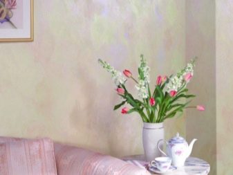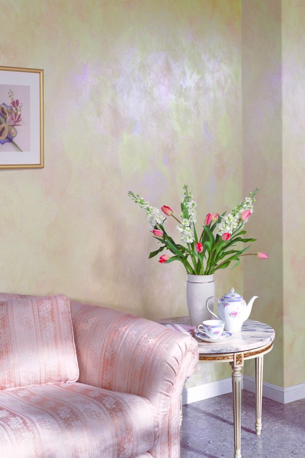 Un résultat intéressant peut être obtenu avec une composition nacrée. Sa particularité est que, avec différentes incidences de lumière, la surface présente de nombreuses nuances dans la même palette de couleurs. En d'autres termes, le volume est atteint, la polyvalence de la couleur. La réfraction de la couleur est possible grâce à l'introduction de la plus petite couleur nacrée dans la peinture.