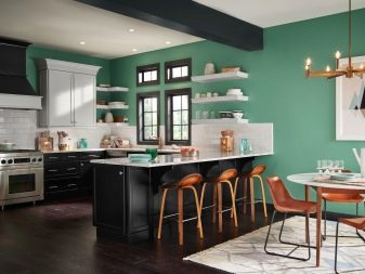 Il est recommandé de peindre les surfaces soumises au nettoyage humide (dans les lieux publics ou dans la cuisine) avec des composés de latex. Même après plusieurs années d’utilisation active, ils conservent la perméabilité à la vapeur, la résistance à l’humidité et un aspect attrayant. Dans les pièces caractérisées par une humidité élevée (cuisines, salles de bains, installations de lavage et piscines, maisons de bâtiments anciens), il est préférable de peindre les murs et les plafonds avec des composés de silicate. S'il est nécessaire de protéger les surfaces contre les moisissures et les champignons, elles doivent être en silicone.