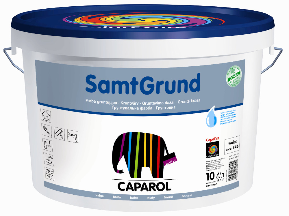 - Caparol - Peindre le fabricant allemand, qui est un autre leader sur le marché mondial. Pour la composition des murs et le volume du plafond de 5 litres devra payer environ 750 roubles. De plus, le coût de la peinture affecte sa résistance à l'humidité. Plus la dernière caractéristique est élevée, plus le prix de la composition est élevé. La consommation est en moyenne de 90 à 150 g / m2. Il existe également des variétés de produits dont la portée diffère.La peinture intérieure peut être universelle (Caparol Alpina Matllatex, Caparol Malerit), pour les surfaces sujettes aux moisissures (Caparol Fungitex-W), lavable (Caparol Samtex 3 E.L.F.). Pour les batteries et les radiateurs, le fabricant propose la composition de Caparol Alpina Heizkorperlack.