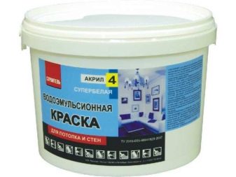 L'option la plus abordable est une peinture à dispersion aqueuse à base d'acétate de polyvinyle, utilisée pour peindre divers plafonds. Il ne peut pas être utilisé dans la salle de bain ni dans la cuisine, car ce type de peinture n’a pas une grande résistance à l’humidité. Ce revêtement présente un autre inconvénient majeur: la tendance à l'apparition rapide de taches et de saletés.