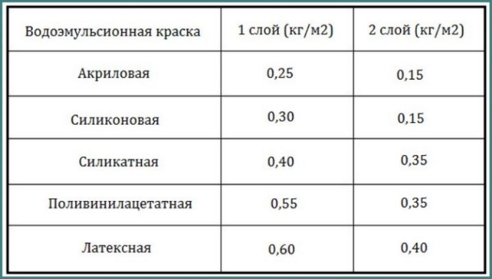 La consommation de colorant à base d’eau est d’environ 210 ml de substance par kilomètre carré. m parcelle à colorer. Mais ceci est une valeur conditionnelle, parce que l'indicateur a tendance à varier en fonction du type de surface, du mode de reproduction et d'autres circonstances. La proportion du revêtement ne dépasse pas 1,5 kg.
