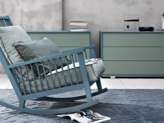 - Dans le même sujet, vous pouvez choisir chaise berçante confortable. Un tel modèle est le plus associé à la chaleur et à la détente agréable. Choisissez un modèle dans des couleurs pastel ou foncées avec un rembourrage doux.