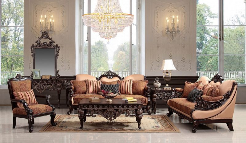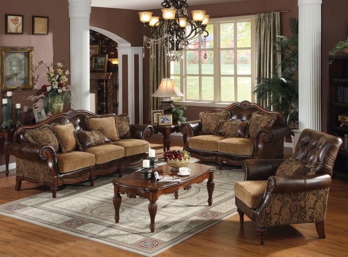 - Meubles sombres. Les produits de couleur foncée peuvent également être utilisés en toute sécurité à l'intérieur, sans craindre que la pièce ne soit en même temps plus sombre. Les couleurs sombres du mobilier complètent parfaitement la pièce dans un style classique.